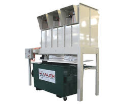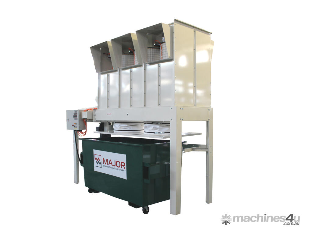 Quality Compact floor print Industrial Dust Unit, Designed to sit over large waste bin for easy waste collection and removal, Motor 7.5hp 415v, Rated to 5550cfm, Filter area 36m2, Inlet Diameter 13'', Auto cleaning filters for efficient air flow, Pneumatic clamping apron for positive bin sealing and easy bin loading / unloading, Control panel can be rearranged for easy user access point, Filters can have weather cover for outdoor set up, Apron designed to suit most waste bin and can be modified to suit special sizes, Overall a good quality Dust Unit at an economical price, Bin shown in pic is not included with unit.